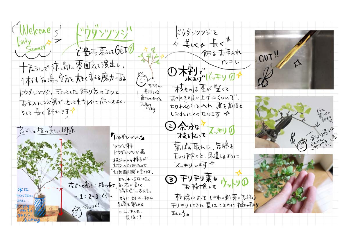ナチュラルで涼し気な雰囲気を演出し、 1本でもその場の空気を大きく変える魔力のある ドウダンツツジ。