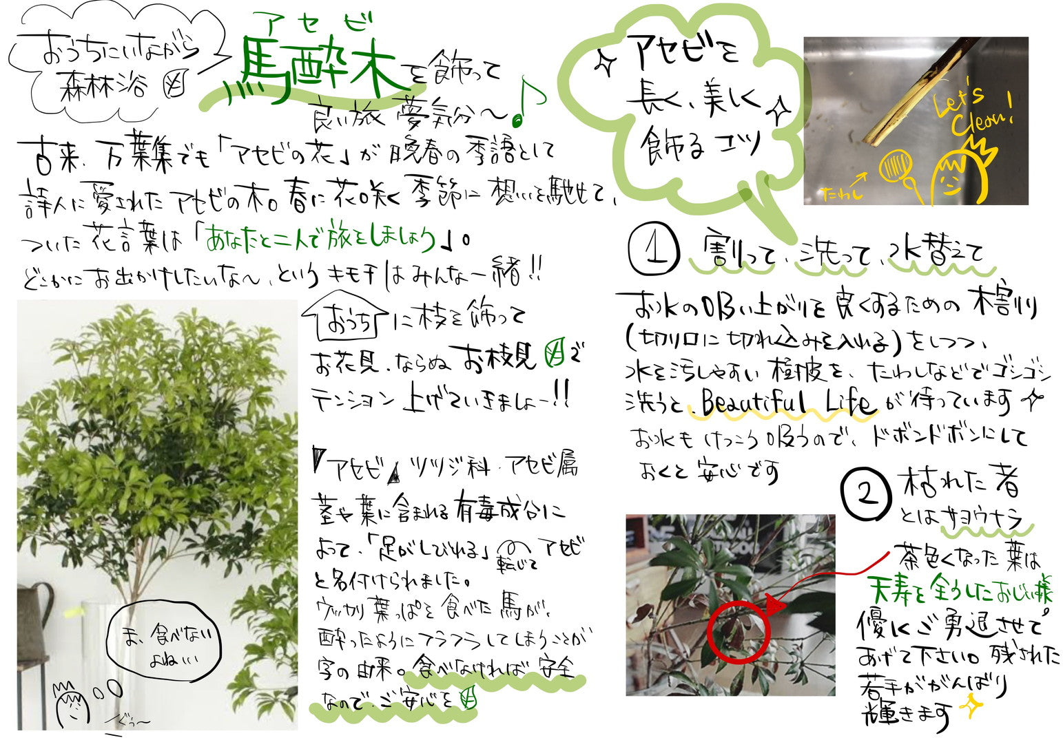 ウッカリ葉っぱを食べた馬が酔ったようにフラフラしてしまうことが字の由来。食べなければ安全ですが、わんちゃんやねこちゃんにはご注意ください。