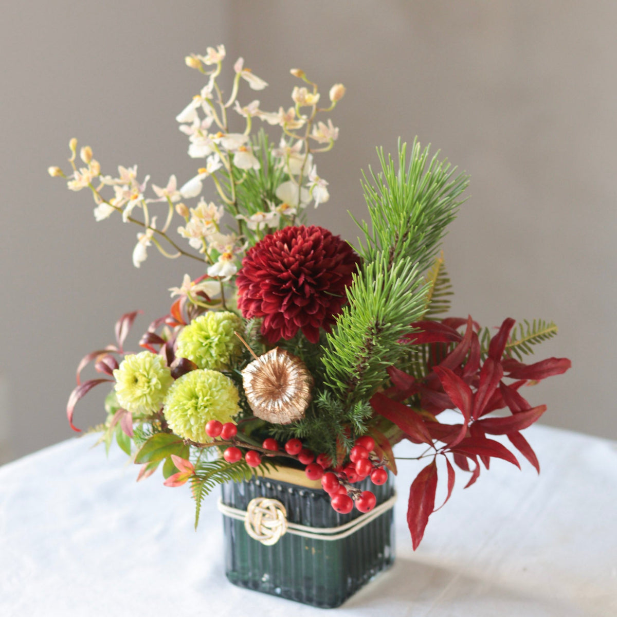 花に託して贈る正月アレンジメントです。