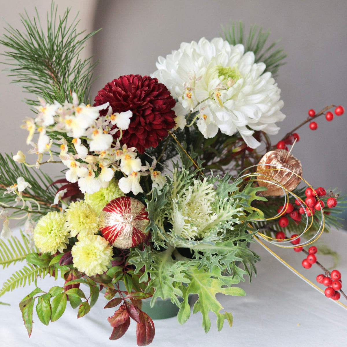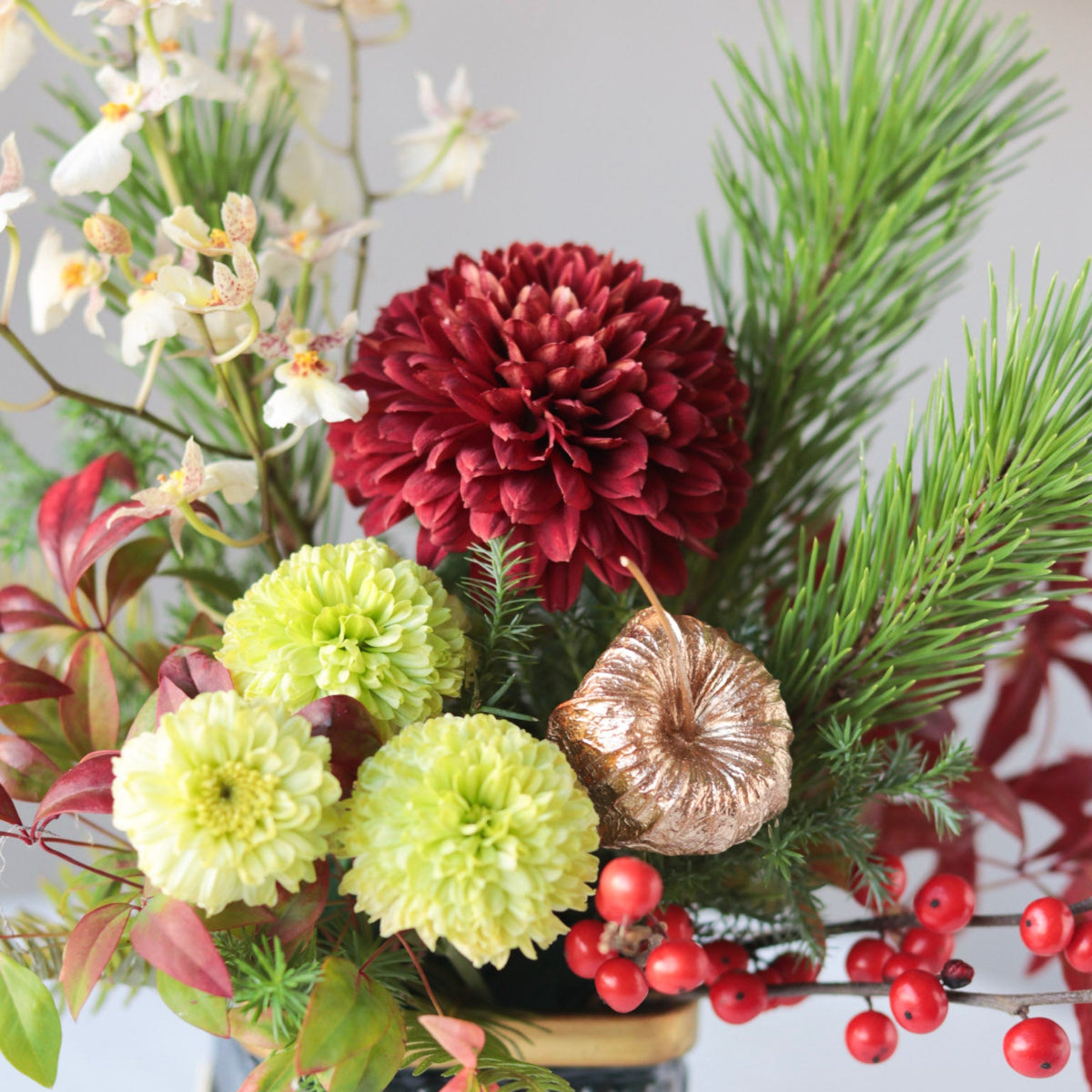 マム、ラン、マツ、赤い実 など